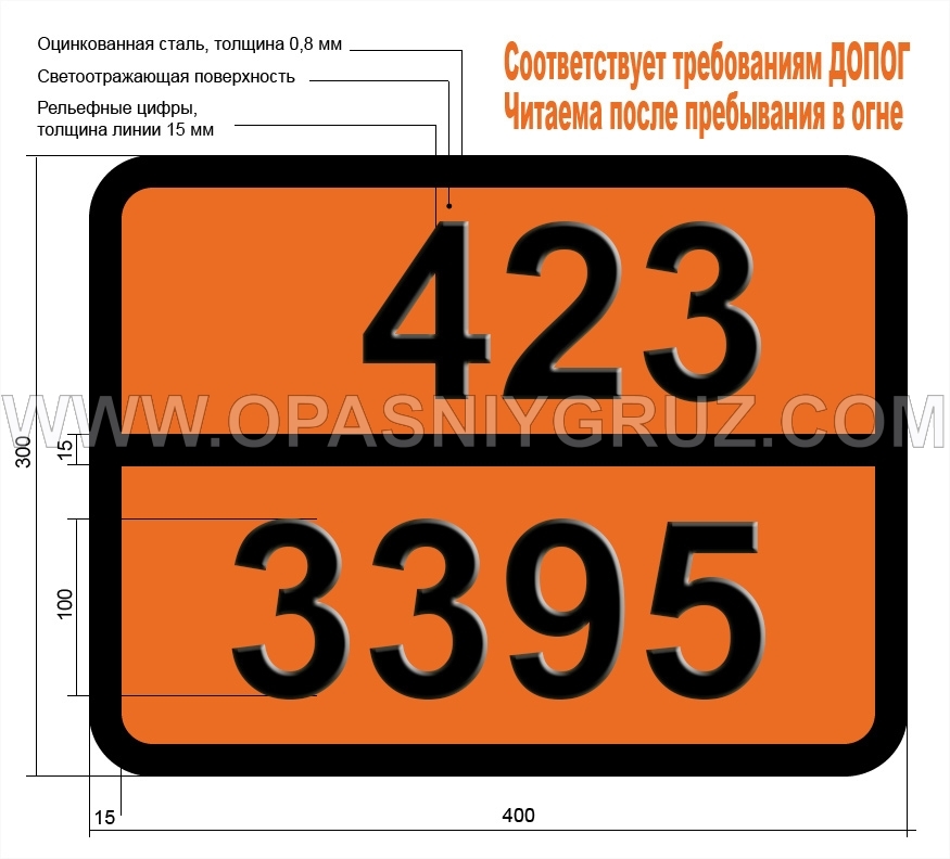 Табличка полностью соответствует требованиям ДОПОГ.